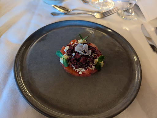Bel endroit avec un foyer pour nous réchauffer après une marche, on s'y était assis tout près pour l'admirer, ça n'a pas été long avant qu'on enlève notre veste. 😅 Je n'ai aucune idée des prix puisque notre séjour était payé par la compagnie, par contre je dois dire que les déjeuners sont très bons et qu'ils sont à volonté, les 2 autres repas de la journée étaient aussi bons malgré que nos choix étaient limités par notre forfait de groupe. 🤔 Bref, c'était bon si vous aimez de quoi de plus cher qu'un hamburger du McDo et un service plus long. Je rappelle que je n'ai pas vu le plein menu, toute fois, je recommande pour une soirée de couple où vous voulez prendre le temps de discuter en tête à tête. ☺️...