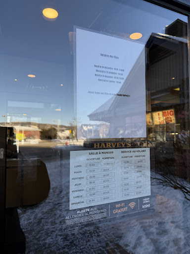 Read moreHonnêtement très déçue. J’ai déjà travaillé dans un Harvey's et je n’ai jamais vue quelque chose comme ça ni dans mon restaurant ni dans un autre Harvey’s. Nous sommes arrivés et on ne voyait aucun employé que ce soit en avant ou dans les cuisines. Après 5 minutes un employé est arrivé. Il ne portait pas de filet pour les cheveux ni de soulier antidérapant ni de name tag, donc je ne peux pas vous dire son nom. Il aurait du porter un filet parce qu’il avait des cheveux assez long pour sortir de sa casquette. J’ai commandé et il ne savait pas comment mettre le rabais que j’ai demandé (aucun problème là, je suppose qu’il est en apprentissage) donc il est allé chercher un chef d’équipe et il est resté en arrière. Après un autre 3 minutes, le chef d’équipe est arrivé. En attendant, nous avons remarqué que le restaurant était très sales. Les dress étaient à moitié vide et sous les réchauds il y avait plein de frites et de fromages fondus. Le plancher des cuisines aussi était sale. Lorsque le chef d’équipe est arrivé, il ne portait pas de filet à cheveux lui aussi, il avait sa casquette à l’envers, il portait des souliers blanc, il n’avait pas de name tag et il avait des AirPods dans ses oreilles. Il a réussis à nous faire notre rabais. Et il est retourné en arrière. Un autre gars est arrivé. Lui aussi n’avait pas de filet à cheveux, il mâchait une gomme en préparant mon repas et à chaque moment de pause qu’il avait il retournait en arrière. Pendant qu’il était en cuisine, d’autre client son arrivé et il ne leur a même pas porté attention et il n’a même pas mentionné aux autres employés que des clients était arrivés. Ils ont donc eux aussi attendu quelque minutes pour que quelqu’un vienne les servir. J’ai finalement eu mon repas et nous sommes parti. Bref, la seule chose qui était correcte de ma visite est mes cornichons frits qui était...