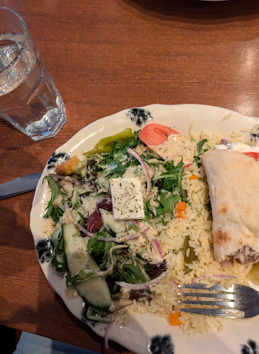 Passed by this restaurant while shopping and felt like a quick bite, so I thought I'd try it out... We were in a hurry to return home (2 hr drive), so I ordered one Souvlaki pita with pork. Firstly, the restaurant was very clean and the atmosphere was lovely. The dining area is very nice, with two displays over the bar, which is just in front of the kitchen. The decoration is nice and lively, adequately Greek and having just returned from Greece, it felt great. This gets a 5 stars. However, the food and service, not so great unfortunately. I will say this however, don't take my review literally and I will state that my review only reflects this particular instance. Once I ordered my pita sandwich, it took almost 20 minutes for the order to be ready, and this was take out.. and the restaurant was nearly empty; there were a couple of occupied tables... After leaving and sitting in my car, I noticed I could not see any pork in my sandwich, so I went back and asked them. The hostess was shocked and mentioned it to the manager, who went to the kitchen to inquire, only to come back and point out to me the small pieces of pork (I asked pork on a stick, not the shredded meat)... You'll know what I mean when you see the pic. So I nodded and said Ooookay... And left. Now the taste... The pita was full of Tzatziki sauce and I could barely feel or see or taste the pork. That is simply my take. The Greek potatoes were good though, but the sandwich was indeed disappointing. I recently bought a similar sandwich from a fast food Greek place at a mall in Montreal and it was so tasty. In any case, I would not be surprised if other dishes are much better and nicer, because this place looked good. Maybe my experience was a...