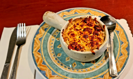 Read moreMy visit at this place was surreal in a way on a Sunday evening around 6pm. The whole area was deserted, we saw probably 5/6 people total including inside and outside the restaurant. The light rain and cloudy skies with chilly wind didn't help, I suppose. The food was warm, freshly made. We ordered pasta and pizza, each portion was enough for 3 of us. We had to pack the rest to go. The French onion soup itself was worth the entire visit, and technically only the soup would have been enough for any one of us. The service was excellent considering the current situation and limited staff. The warm welcome and friendly treatment made for a beautiful end of the day after seeing fall colors around...