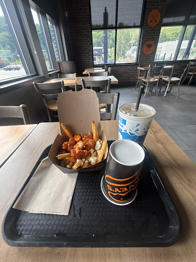 Read moreBurger place where you can add your preferred condiments. Good parking, handicapés accessible, a terrasse is available in summer, 3 electric véhicule chargers available.