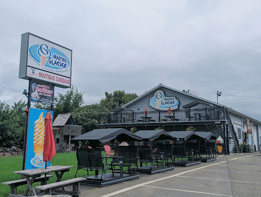 De plus, il y a, sur un grand terrain gazonné et sécuritaire, des jeux extérieurs pour les enfants. Ils sont près des tables et balancelles, afin que les parents puissent terminer leur crème glacée et discussion en toute quiétude.