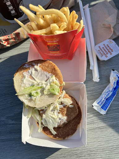 They gave me a new fry... I drive away, the fries are cold and mixed in with hot one and over salty!! These are for my kids, so I went back in to exchange it again. Were talking almost $6.00 for fries more exactly $5.60. The fries should be hot and fresh!! It's 1:27 pm Absolutely no excuse to have cold fries after such a long wait