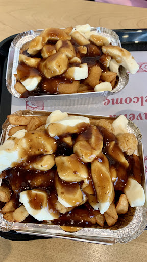 Read moreI came here expecting to be really impressed with their poutines, I heard so many good things about it...but maybe my expectations were too high, and this place was just kinda better than average , (at least for me). The cheese was really fresh, and this is what makes this place a bit different, but the overall taste of the poutines was kinda ho-hum. What is nice is that the poutines come in many different sizes from "bebe" to Large. We had a bebe with veggies, one small with popcorn chicken and medium regular. The restaurant is large with lots of seating, and there is also an ice cream...