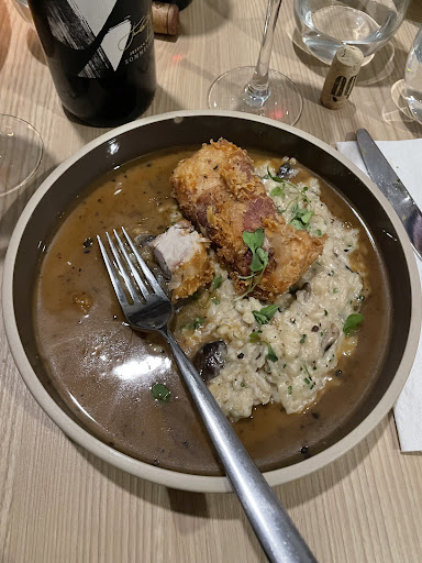 Read moreTrès belle ambiance! Superbe entrées Foccacia grillée elle est à "tomber par terre" Wow j'aurais lichée l'assiette!! Mon homme a pris l'entrée de polpette et a bien aimé. Comme plats pour ma part j'aurais pris le veau, par contre il m'a offert que ce soir là on pouvais choisir le veau ou un filet mignon! Donc j'ai pris le filete mignon.Je n'ai pas pu l'avoir bleu, car il étaiy cuit sous-vide, donc il était medium, par contre il était délicieux et fondant en bouche!! L'assiette manquait de couleur, peut être en y mettant un poivron grillé? Mon homme a pris le poulet, il y avait une panure et l'a bien aimé aussi, le rissoto aussi était parfait! Je n'ai pas pu m'empêcher de prendre un tiramisu, il avait un petit goût d'agrume en bouche et il était excellent! Ma mère et mon beau- père ont aussi apprécié leur repas, entrée de salade césar bien garnie. Avec plat de spaguetti au boulette avec beaucoup de sauce et Cannelloni pour mère qui a tout manger (sauf le kale) car c'était délicieux. Notre souper accompagné d'une bonne bouteille que j'avais offert ma mère pour la fête des mères !