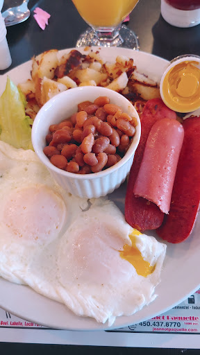 Read moreTerrible..je me rappelle pourquoi je n'etait pas venu dans le coin depuis un boutte . J'ai demandé l'assiette avec saucisson avec bacon extra, mais je m'attendais jamais à avoir des saucisses à hot dog.Des patates qui goutaient le réchauffe ou d'hier pis aucun bacon. Après avoir demandé un échange pour des vraies saucisses,ils ont pris mes 3 hot dog et mis 2 des plus petites au porc que j 'ai vu a datte.pour 10.95$ Absolument déçu. Les gens qui commentent excellent ne savent pas c'est quoi un bon déjeuner.On était 5 a commander et la serveuse avait même pas de calepin pour prendre des notes ta fallu répéter et voilà pourquoi j'ai pas eu mon bacon. Même tout les profs de l'ecole pas loin de sont passés le mot et y vont plus.En plus c'est super bruyant plus q'a la normale car un coté est just à côté de la cuisine pis le resto au complète est presque a aire ouvert.Faites vous un faveur et allez au Quotidien sur grande côté à la place 6 min plus loin vous en serez...