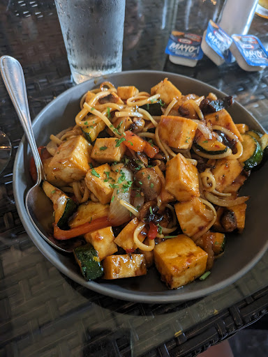 Everyone received their food at the same time, and then the table was quiet. Our food was delicious. I was hoping the tofu in my dish would be fried, and it was. I wasn't expecting wheat noodles, but I enjoyed them nonetheless. The sauce in my dish was a minimally spicy General Tso - very yummy. My brother is not supposed to eat too much cheese, but he knew what he was getting into when he ordered the Gnocchi. As of the next morning, he still says it was worth it.