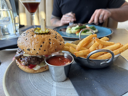 Read moreMy husband and I went to this restaurant for an impromptu dinner date on April 26. The atmosphere was perfect - very professional and modern/sleek, yet also inviting. The floor to ceiling windows really opened up the space with the natural light. Not to mention the view of the water was wonderful. I cannot wait to go back when the patio is open! Our server was wonderful, also very professional and elegant yet friendly! I forgot to write down her name (whoops!), but she was a stunning woman from Bulgaria! My husband ordered the Espresso martini drink and it was very well done, robust with flavour. I ordered the Caesar with light ice. When I got the Caesar it had too much ice for my liking and tasted a bit watered down. I don’t usually complain, but I let her know and she got me another one right away with much less ice and full of flavour, which I really appreciated, as I was nervous to even say anything. We got the sunset sushi roll to share and neither my husband or I could rave anymore about this roll!!! I have never had sushi with the caramelized walnut topping on it before, and it pulled the flavours together so well that every bite was tantalizing. We are sushi lovers and we love flavour, and this roll was 10/10! Would absolutely order again. I had the 1905 burger with fries for my main. Also full of flavour and did not disappoint! The Brie cheese incorporated was perfectly oozing with flavour and pulled everything together for me. My husband had the 8oz sirloin steak with gnocchi. It was all wonderfully cooked, and I have to note that I really enjoyed the flavour and cook of the veggies that came on the side with that dish. There was a large party booked in the main area that began to arrive as we were leaving, and I have to say again that the atmosphere is great and I would definitely book an event or large dinner in this space. Lastly, the location was perfect, as we were able to drive not 2 minutes away to the park on the lake that we could see from the window, and stroll down the pier while we digested our wonderful dinner. We are new to this area and are excited to have found this place. We will definitely be back for...