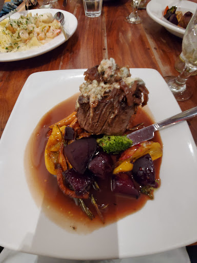 When my steak finally turned up late, it looked kind of naked. And although the steak knife was sharp, the steak was tough to cut. Wasn't impressed.