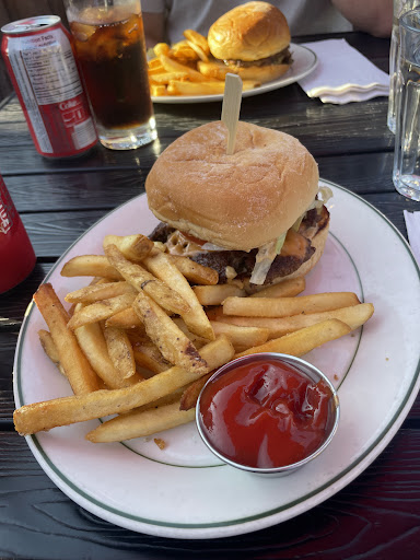 Quick review: Lacking with flair, need a second chance, seems like very little in the way of vegetarian or vegan options, an impossible patty for $3+ seems a little extra. Good notes: friendly servers, good atmosphere, great location, wheelchair accessible, family friendly. Experience: was seated, couple seated after was served right before us, they got their food and drinks right away, we waited about 40 minutes for food and to be asked for another drink.. When the burger and salmon burger arrived we asked for hot sauce (it never came) and all the food was “cold”- Barely warm. The restaurant was clean, every one was friendly , maybe it was just a luck of the draw one of those nights and not a reflection of an experience that could have been. Life happens. But getting cold food sucks. Yes we ate it, it was passable in that state so I’m sure hot would have tasted better. The menu is small and it’s a little pricey for what you get, 10$ for fries is a lot.. limited menu is for the single chef in the back but if the 10 items cause 1 hour waits for a burger, then maybe a change ?