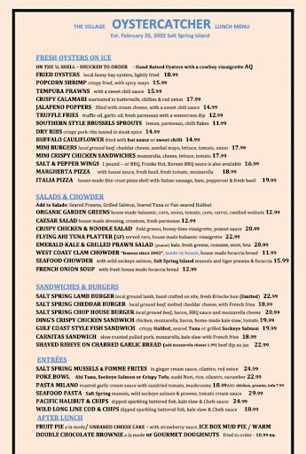 Read moreIf you care about good service, the Oystercatcher is top-notch. We had our first experience after an hour-long ferry delay - so we were admittedly a little frazzled. No one wants to eat a 3:00 lunch, but the server was personable, funny, and handled everything with expertise in a very packed Saturday afternoon crowd. Because it was so late, we opted for share plate and had Calamari (outstanding), Scallops, and Fried Oysters with a couple of fantastic Caesars as well. The Island offers many great dining options so we hadn’t considered returning until we experienced the worst dining experience of our lives at Salt Spring Wild Cider tonight. Though it turned out to be one of those “Blessing and a Curse” experiences that made us realize it was clearly meant to be since it resulted in us leaving and ending up enjoying an amazing dining and customer service experience with fantastic live music to boot.