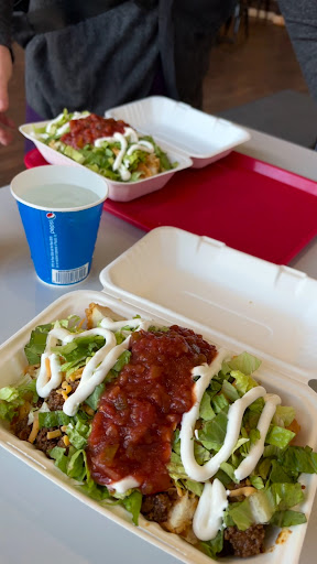 Our food tasted delicious even though the bison burger was cold, the poutine was cold and our side fries was cold. For being the only order the whole time we were there I feel there shouldn't of been any reason for that. The pizza was remade as a topping was missed but was served hot. I found the bannock for the pizza to be on the thicker side for a pizza but it wasn't dry so I was quite...