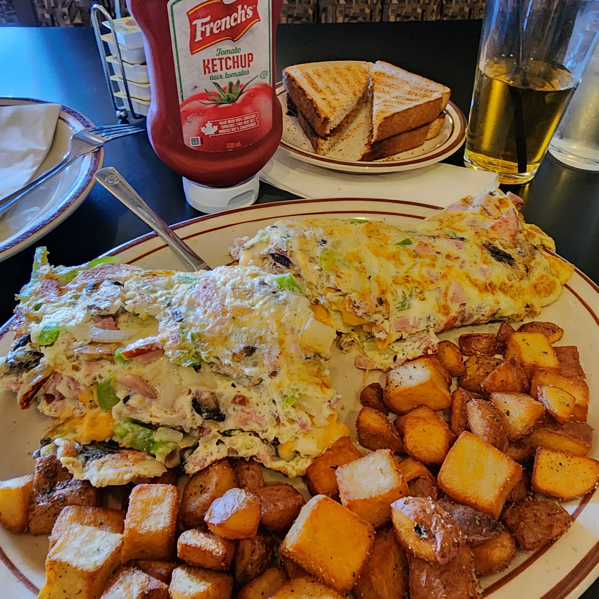 It’s called the Arena…my husband was hoping for hockey theme but alas it would just confuse us more once we entered. Confusing art on the walls like someone’s grandma decorated with all the art she ever owned in a lifetime, tired wallpaper and colour palette, but it was clean. There was no need for a reservation because there was only a few other tables occupied at 6pm on a Friday. And we’d had a long day and didn’t want to search for something else. Our hotel was just across the path. We were tempted by the special on steak and lobster but I felt like I should have ordered otherwise. My husband was exhausted from his flight and pushed his plate away once he sampled the T bone steak (we both ordered Med Rare but received Med-well) and cold dry overcooked lobster. I sent my steak back and they brought out one that was properly cooked. Actually, I give the owner credit because he did come out and ask about our food once it hit the table and he was the one to order a redo. My potato was not hot enough to melt the butter so once the butter and sour cream were on it I just gave up and ate it cold after I removed the chunk of unmelted butter. Our server was excellent, very attentive and made sure everything else was to our liking but its difficult to be a server in a slow restaurant…tips suck and they will lose her if they don’t get it together. They comped our second beer to make up for the disappointment which was appreciated.