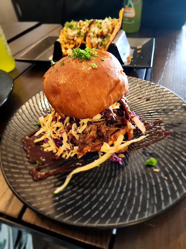 Now, onto the food. My party and I ordered a large selection, so I can't provide an accurate review of the price per individual. However, after seeing the portions, the plate presentation, and the quality of the food, I felt as if I had underpaid for what I received. We ordered 2 brisket mac and cheese, 1 pulled pork taco salad, 1 smoked pulled pork, 1 Carolina mustard sandwich, 1 pulled pork apple pie, 1 BBQ pulled pork, 1 birria grilled cheese, 1 brisket cheese street corn taco, their accompanying sides, and two additional sides. This left us with a full table, four full bellies, and still partially full wallets.