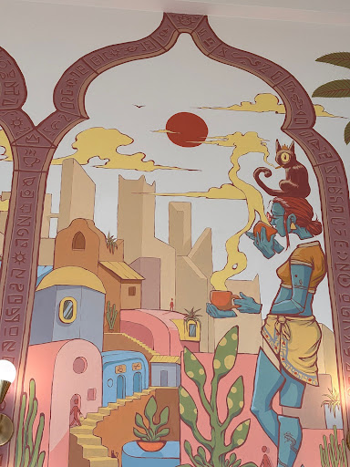 Went early morning for breakfast, and the cafe is bathing in a beautiful and warm sunlight. The furniture is well chosen, mostly second hand as I understand after a chat with the only barista here this morning, who kindly told me a bunch about the creation of this great coffeeshop. Decor is worth the view : well adjusted, color-themed and roomy all the while being warm and inviting. The mural is fantastic! 🧭🍵