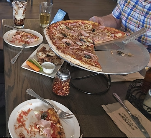 We like to try pastas & pizzas, but were informed that they rwmoved the pasta & table service, after the merged with FatBurger. They were very helpful in assisting us in ordering & what we would prefer... Got a grand size 16" Pizza, all meat, minus the spicy ingredient (I forgot what its called, but its something Italian). Some Salt & Pepper Wings, which they accomodated as Baked, instead of deep fried, with a choice of dipping sauce. I chose Ranch. Iced Tea, a pop & beer. We also got their High Ball Desert, (I forgot exact name). Its basically Tiramisu on the bottom of a tall glass, topped with their Specialty Ice Cream, topped again with Real Cream - it was really good !! My son asked for this to be served first.