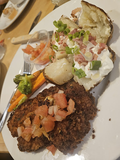 We ate here for dinner tonight during our second night stay at the adjoining hotel Travelodge. The service was awesome, very attentive and friendly server. It was my birthday and the staff joined my family in making it a special end to the day, it was sweet. The food I had was wonderful. I tried the herb crusted tilapia with pico de gallo and it was perfectly cooked with delicious flavors. It came with a baked potato with the usual toppings on the side to add and some vegetables, the sides were simple and good. I also had a French onion soup as my appetizer. It was perfect for French onion soup. My families dishes were great as well, just kids meal fish and chips and chicken tenders with soup which they loved and also a blackened mango chicken which was delish too. The white chocolate brownie for desert was sooo wonderful. Yum! The mai tais were perfect too. I'm happy we just decided to stick around the hotel for a meal because Fixin did not disappoint:)