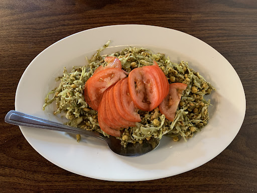 I was recommended the Nan Gyi Thoke. Which is a traditional coconut/egg noodle soup with crunchy bean. It was tasty, and probably the least spicy traditional dish. I'm no fan of cilantro, but even that was lightly added and gave the dish more depth. My picture is mid-dining, pardon.