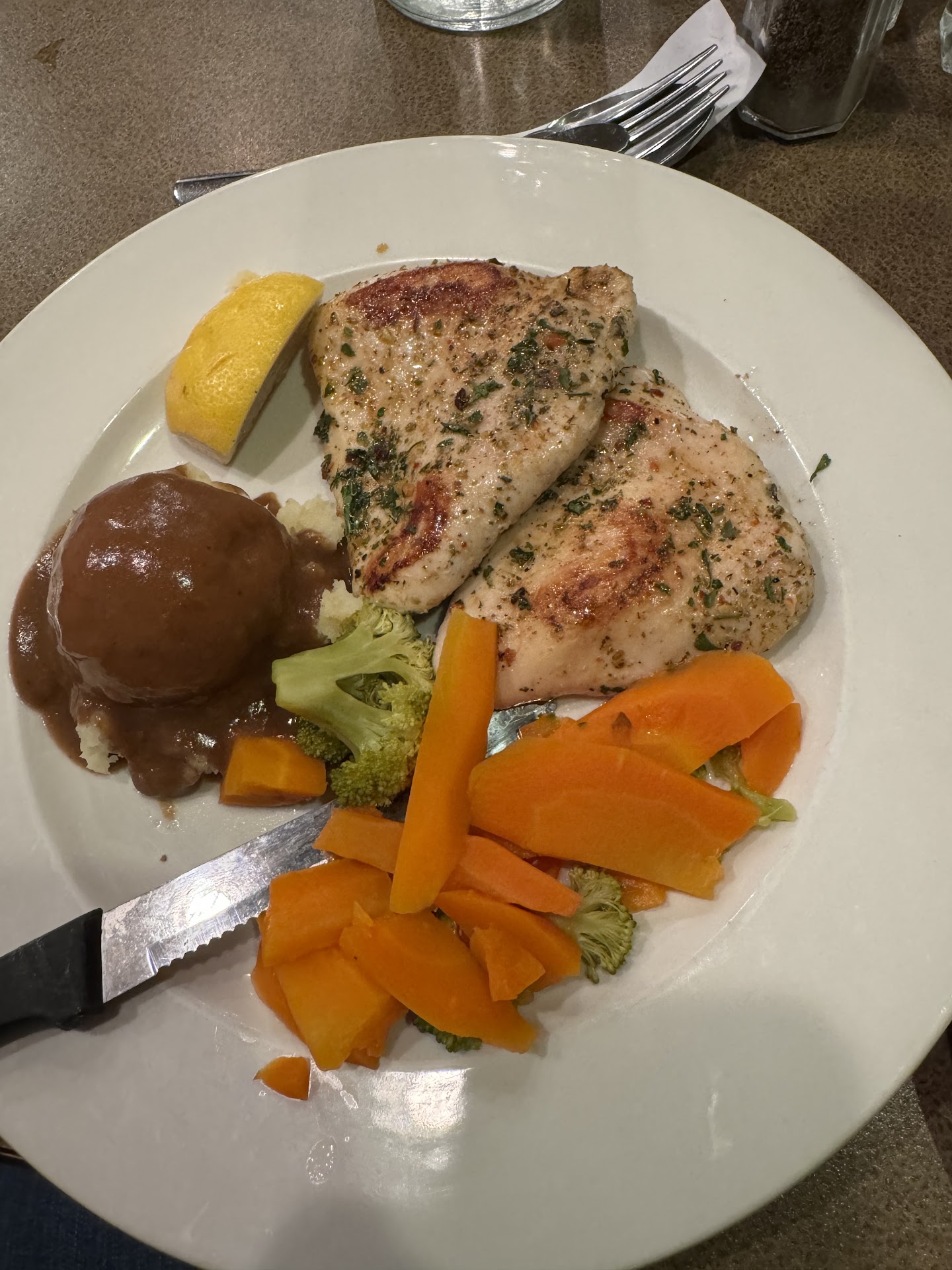 Ā Ā Ā Read moreI went tonight and saw a giant cockroach on the wall and then it crawled onto a table :) There was also a hair of the server's in my food. Thank you for taking my plate Away to remove the hair and bring it back to me The server refilled a glass of iced tea and poured it all over one of the people in my party's jacket. She did not notice. She also reached across the table nearly touching my food with her sleeve. My favourite part was the coconut cream pie. I don't know if I would advertise that it was made In house because it was revolting. I couldn't even get my garberator of a kid to eat it. The hostess was apparently unable to entirely discount my dessert (?? The hair was of zero concern apparently lmao) and and personally I would have comped the entire bill, but I am not a person who runs a restaurant full of cockroaches trying to make a dime. I...