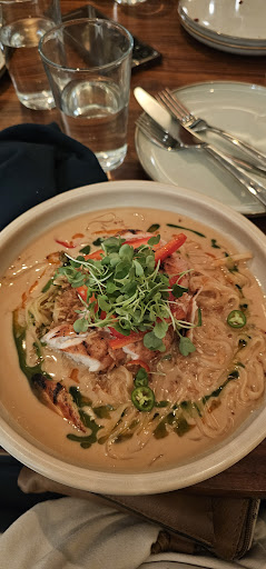 Read moreI think this has a lot of potential but needs to work out a few kinks to really nail what it's going for. We had dinner for four and the vibe was great, everyone was friendly and we had a nice time. A few thoughts! the servers were nice, but I think everyone should be retrained on how to pace a dinner, especially since the menu offers a lot of share plates. All of our food came out at once, which was fine but not ideal especially since the table was small. we weren't sure if all our dishes were served with the correct cutlery, e.g. chicken hard to cut with regular knife, udon spoon also servers make sure to ask people if they want another drink so you can get that $$$ the food descriptions on the menu should be more reflective of the final Dish so dinners can really get a sense of the meal. We were surprised by what some of the dishes actually featured (e.g., the duck/tofu dish was predominantly udon noodles, squash plate was fried) -the food was interesting but the menu and some of the dishes didn't seem cohesive, e.g. rum tiki drinks, next to Asian influenced dishes next to Italian and local heavy dishes. the food was fine but nothing wowed us unfortunately. The sauces of the PFK were a bit odd and sweet, some dishes were overly salty and the texture of the squash was mealy. The ramen was nice. -i did really like how accommodating the menu was for dietary needs!
