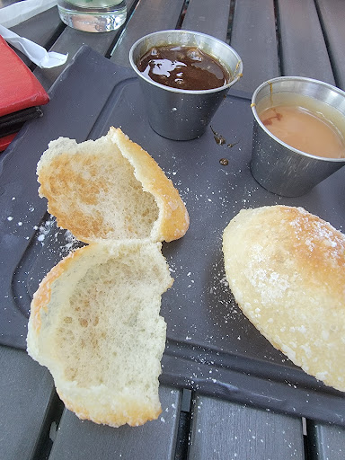 Everything seems overcooked - the spinach dip is cooked until it's dry and burnt at the edges. And the beignets (which are why we talk ourselves into going) are kind of awful now. Tiny, empty inside, overcooked to a crisp, super dry. Like miniature overcooked pita pockets. They used to come piping hot and were pillowy soft doughnuts. And we used to ration the salted caramel dip to have enough for all six of them. But our last three visits the beignets were cold and at the end the dips were basically still full because the beignets were just six glorified chips.