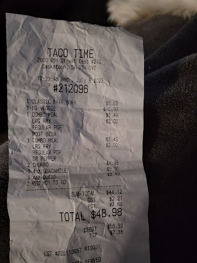 Worst service ever,, ordered a few things ( no tomatoes ) everyone we tried had tomatoes in them even thou the wrappers had big no tamatoes on it. Even after we ordered the cook asked us( so no tomatoes? ) i said yes. I spoke to the manager, told her this was unaceptable, as 6-7 employees served us and me and my son were the only patrons in the store. Even the food value was cheap and very skimpy,, way better value at subway or tacobell. Steer way clear of tacotime, they have no idea how to serve properly as a restaurant. If i could give -5 stars i would, take your business elswhere.