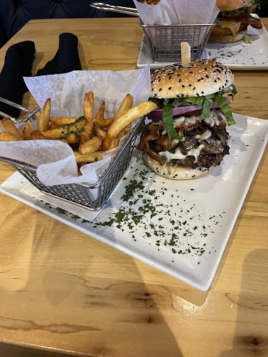 Now, let’s talk about the food. The menu offers a fantastic variety, from classic wings and burgers to some unique options you wouldn’t expect at a sports bar. The wings were crispy and packed with flavor, and the nachos were loaded with all the good stuff. I also tried their Chicken Club Burger, and it was cooked to perfection—juicy, flavorful, and with the right amount of toppings. Definitely not your average bar food; you can tell they put effort into the quality.