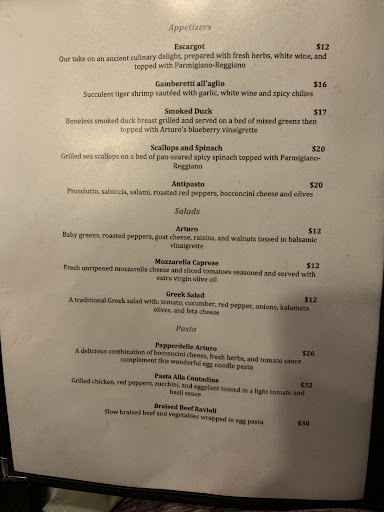 After days of traveling from Vancouver Island, I was craving a truly satisfying meal â and Arturo Ristorante delivered beyond my expectations. I called ahead, a little worried that my road-weary, disheveled look might not fit the atmosphere, but the host immediately put me at ease, kindly telling me, âDonât worry, thereâs no dress code â just come in and enjoy yourself.â That set the tone perfectly. I took a seat at the bar, and enjoy myself I did. With eight stunning pasta options on the menu, I couldnât choose just one. Luckily, my bartender Tom â as gracious and hospitable as he was gorgeous â suggested a split order and guided me toward his personal favorites. Best advice ever. The chefs are absolute wizards. The homemade pasta and sauces were so exquisite they nearly brought me to tears â truly one of the most memorable meals Iâve ever had. I ended with the tiramisu, a dessert that managed to be both rich and airy at the same time, the perfect finish. What a heavenly spot. If I could give more than five stars, I would. Thank you, for such a...