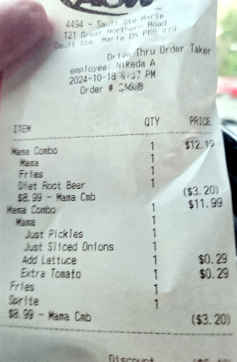 Read moreOn our way to McDonald's Me: ( saw a&w) you wanna go to a&w and get yam fries instead? Wife: yes, yam fries I go in and order a spicy habanero and beyond meat with YAM fries and onion ring. Food smelled amazing in the car. We got out of the parking lot and my wife put some fries in my mouth and they were regular fries. Disappointed we turned around and went back. Told the girl that she gave me regular fries instead of sweet potato fries. She refused to acknowledge her mistake and told me bluntly that "you ordered regular fries". Sigh... wasant in mood for a confrontation. Ordered yam fries again. By the time we got home food got cold. Taste is good but would have loved warm dinner after the...