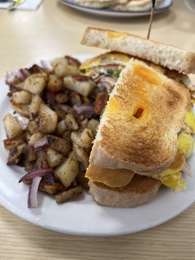 Ā Ā Ā Read morePleasantly surprised by this absolutely delicious meal! We are from the states and wanted iced teaā¦. Our server was very accommodating and brought us a tea kettle, warm tea, a pitcher of ice and glasses of ice. It worked out perfectly! I ordered the Western toasted and potatoes. Sandwich was full of eggs, ham, peppers and onions. Potatoes were cooked just right and seasoned well but not too much! My husband ordered the pancakes and sausage. Everything...