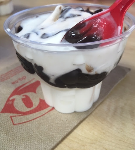 However, this recent experience was the icing on the cake, so to speak. To preface, we paid about $16.50 for three small sundaes exactly like in the photo shown. When ordering, we had asked for extra topping - as you can see, we received under the minimum, even though we had paid extra. Such was mentioned to the server, but they were apathetic in response and didn't do anything about it. The soft-serve ice cream itself hardly reached beyond the rim of the cup. One of the customers ended up waiting in line for nearly 10 minutes to ask for an extra side of topping, ice cream melting in the process.
