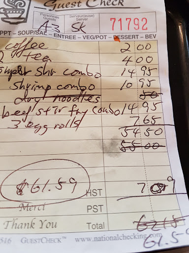 Read moreNot a serious business - should be closed! The girl that takes orders is incompetent. Placed an order because Hong Kong was done taking orders with the expectation of a wait, for delivery and 3.5 hours later I called when the food didnât show up, at almost 9 pm and she lied in front of her managers saying I never ordered it and that she canât call âa long distance numberâ and that I was supposed to call her back again after ten minutes. Total fabrication! Deceptive little girl. Where is it normal for someone to place an order then call again to order a second time! Manager didnât take ownership of the problem either and gave the phone to the girl who took the order, who then proceeded to lie repeatedly in front of her manager. Really despicable. Totally made up to save her own skin. Instead of apologizing, told me âwhateverâ then hung up the phone. The little girl should be fired! Avoid this place, theyâre trash! And to the owners: what are you doing with your lives? Take charge of your business now and fire her! She caused too much stress and lies and sheâll do it again. You donât argue with a customer ever and you donât accuse a customer of lying! Read the reviews of other customers and alarmed to read about all the food quality problems. Sad to have such a place...