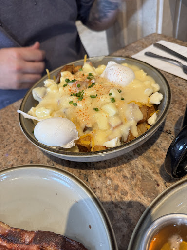 The only thing that should have been mildly annoying for us was that we had to wait for an 8top to clear as we were a party of 5 adults and 2 kids. I understand having to wait for a larger table to clear, especially on a Sunday morning at a breakfast place, but when they seat a party of 4 at one of the only large tables, when a 4top was just about to open as well. Not to mention the table of 6-9 elderly people that spent $45 collectively (they left their reciept on the table) and didn't tip. They were just sat there for about half an hour with absolutely nothing but their coffees in front of them, chatting. I'm trained in this industry, went to post secondary for it, and there comes a point when you have to kindly urge patrons on when your restaurant has 15 people in your small lobby. Our wait time was quoted by the "waitlist" for 11+ minutes and boy did they really rely on that plus sign. We waited for about half an hour. When we were finally seated, it was at the awkwardest, most uncomfortable table near the serving station, and we were missing a seat. Upon asking for an extra chair, our server huffed before apparently going to hell and backto go a couple step to find my partner something to sit on. This was not the only "inconvenience" we threw upon this poor poor woman doing her JOB. She was incredibly pushy with our order, and then came back to our table a total of 3 times afterwards, despite problems at the table. She slammed our drinks down, demanded our order again, then informed us that 2 of the skillets that we ordered might take a bit longer. Everything came out all at once, which raises alarm bells when warned of a dish taking longer than others. My friends, their kids, and my two travel partners all had amazing food. I ordered the Adonis, a delicious sounding eggs benny, and the home fries. Potatoes were good, but my bennys were ICE and the English muffin was untoasted and soggy. I tried flagging our server a few times before she finally deemed us worthy to check in, once the kids were done their pancakes,15 minutes later. I mentioned that my food was cold, and she gave me the most scathing look, as if she was saying "that's because you haven't touched them and they cooled down". Meanwhile, I was so excited for these damn eggs that they were the first thing I dove into. Ice from the first bite. So I simply ask that they be taken off the bill, or partially off the bill, because I am not going to eat more than the one bite I tried and also my potatoes. She comes back, 10 minutes later, and shoves a takeout box in my girlfriends face without looking at me, and ran off. So my girlfriend packages up her food that she had actually enjoyed and couldn't finish, and the server sees this and asks if we need another box for MY food. I say "no, I don't want them at all. Please take them off the bill, they're inedible". She grabs my plate and doesn't even go 5 steps before we hear the BIGGEST huff of annoyance. We get the bill, and surprise surprise, the Adonis is on it. We were so fed up and my friends didn't want to cause a scene, so we just paid. We left a $20 on the table as well, because my friends are also in this industry and understand even bad servers live off of their tips. No "have a good day" or smiles or courtesy at all from this woman. Just brought the machine, stood there silently, and left as soon as she could. The whole "vibe" of the staff here was they were there for a cheque and nothing else, and that's not a healthy thing to have in your restaurant. This was my first time here, as well as my travel partners, and we are never coming back and warning people against at least going on a Sunday. Maybe the service would have been better on another day, but the lack of willingness to work with us in a polite manner, even on a busy day, was disgusting. So disappointed as I love the message behind this restaurant, just a shame they employ people without an iota of passion or at...
