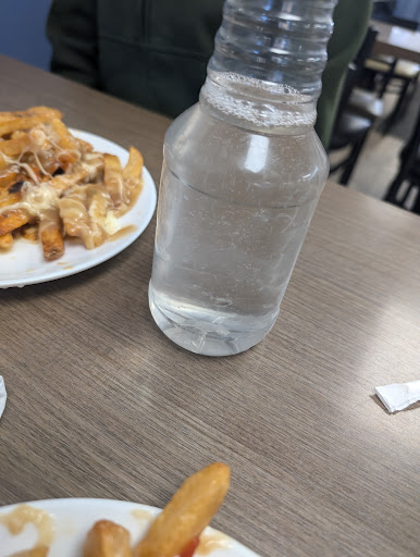 We decided to have lunch, Sat at the table and tossed some vinegar on our fries and the vinegar had floating stuff inside. Which is absolutely ridiculous, first time I've ever seen that in my life.