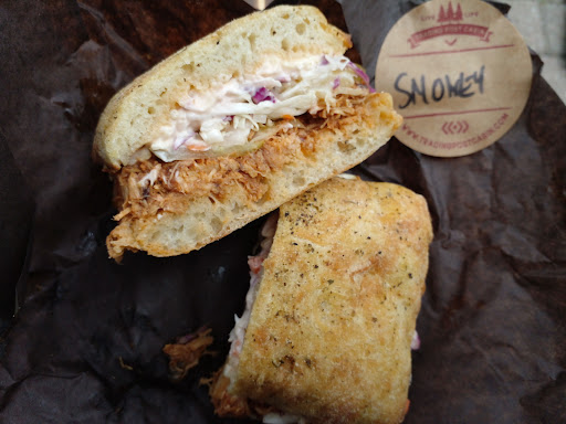 The smokey sandwich ordered is appropriately balanced, caramelized onion, pickle, with some sort of slaw and the right amount of pulled chicken. Pulled chicken is a very satisfying texture. Overall 10 out of 10 for the sandwich. And 11 out of 10 for service. The ambiance is quaint and very much like a cabin general store with a bunch of handmade goods ranging from candles, to honey, to mustards and deserts.