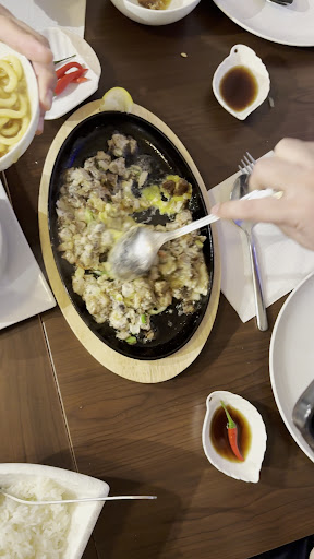 I had Pork sisig and garlic rice. The pork is a skillet type of dish with a generous amount of pork sautéed in onion, bit of chili and a mayo sauce...with an egg on top. I had my egg scrambled on the side. Very flavourful dish and the garlic rice was a wonderful side.