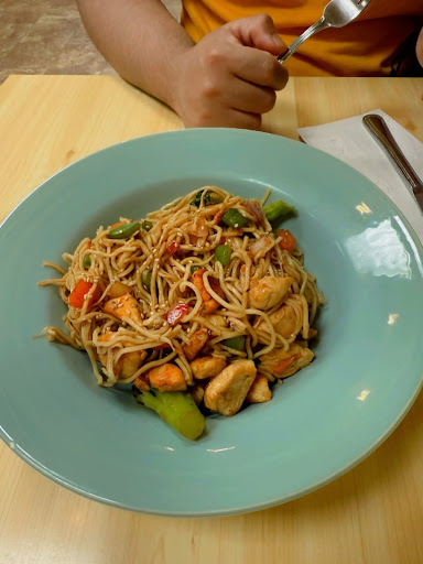 The food is amazing. I always get the bibimbap, and my brother got the chicken chow mein today. Everything was so flavorful and fresh. Their sparkling mango and tropical juices are also really, really good.