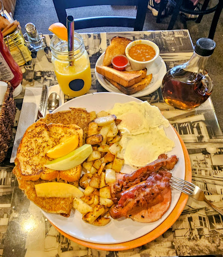 The food and service were AMAZING as usual, and price is more than fair considering the portion size (roughly $30 + tip). I got the "Gros Brunch" (pictured): 2 eggs, 3 meats, 1 crêpe, 1 french toast, and small serving of beans, with toast, potatoes, and fruit slices included, and you know I had to get the fresh-pressed orange juice. Perfect for bringing home leftovers.