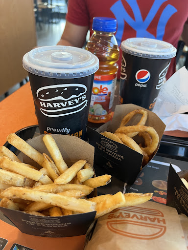 I ordered 3 combos online at 6:20 and it was supposed to be ready for pickup at 6:50. I arrived at the establishment at 6:48 and stood by the mobile order pickup, 3 minutes later someone asks about my order and then starts making it a minute after it was supposed to be ready for pickup. 8 minutes later the order is handed to me. The food quality was okay, the fries had no salt, the salad dressing wasn't good and the paper straws didn't work for drinking a milkshake so I had to take off my already broken lid when it was given to me at the counter and drink it like a standard cup, which wasn't a problem since it was only about â full and didn't come close to the top. The straws we're also sub par for drinking soda, that was both watered down and had no ice. The hotdog was okay but nothing to write home about and the burger was the only thing I would consider good about the entire experience. Overall I don't think Harvey's will be my go to burger joint when McDonald's is closer, cheaper, faster even without ordering ahead, and has 0 of these issues every time...