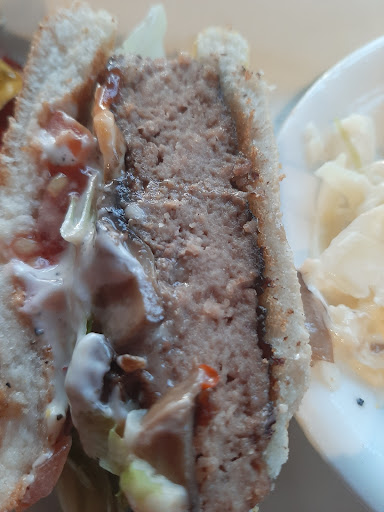 We had been driving past this place for years always saying one day we will stop by. The place looks nice, but oh were we dissapointed with what they said were hamburgers....meat lovers beware....at $17.99 with cold fries and a small bowl of badly prepared cole slaw was absolutely not edible...the owner/chef came to our table to show us a bag of the "meat" that they use to fashion into the shape of a hamburger. A customer at a table near us stated that he too had his doubts about their meat...(he likes their pizzas) They offered us free dessert (My wife who couldn't eat her burger, had one which she found to be very good) I paid for our bill (I should have asked for a doggie bag) for what was half a hamburger and half a container of fries(I was starving)...it was an...
