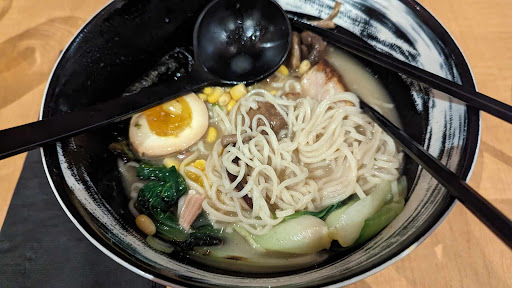 If you have nothing to compare it to, you may find the food pretty good, but unfortunately the ramen did not satisfy my craving for authentic ramen. The Shoyu was bland and lacking in rich soya flavour. The Tonkotsu was also bland and lacking in bone broth creaminess and was supposed to be spicy, but it wasn't, perhaps to accommodate "Boreal" palates, though perhaps additional condiments could be added to the table, and no, not (Thai) Sriracha. One also hopes for thicker cuts of fatty pork belly, but we had smaller cuts of overly roasted pork like as if the meat was cut and roasted as opposed to a large cut being oven roasted and sliced after cooking. The noodles were REALLY good- hopefully in the future there will be variety. Not sure what Chinese Bao Buns are doing on a "Japanese Bistro" menu, but I tried them anyway, cause I couldn't resist. The buns should be softer. There was some good flavour, though underwhelming because the ratio of bun to filling was off as the buns are too small especially given the type of filling (pork + cucumber). As for the ambience, the servers are kind and the place is beautiful and clean. The music was loud and out of place though. I know it's a bistro, but some chill downtempo instrumental music could really help to create an atmosphere without lyrics to yell over especially any time before 9pm (Spotify playlist recommendations: "Lo-Fi Beats", "Japanese Chillhop", "Japanese Trap|Lo-Fi Hip-Hop|Chill Beats"). Anyway, I have great hope for this place because the quality of the ingredients and presentation are there! Some more research and trial and error is needed, especially to honour cultures that don't belong to...