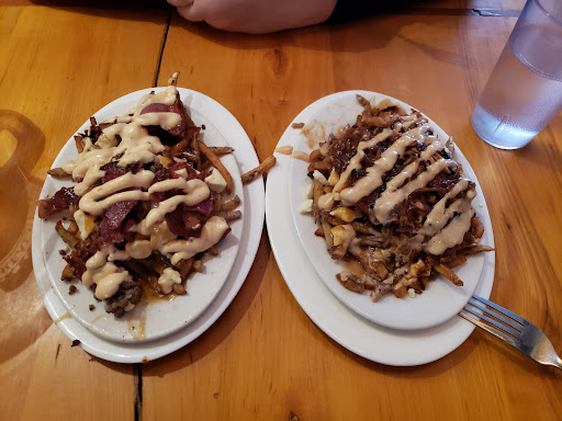 Most awful experience: We were 4, ordered our poutines. It was a busy evening, so ok, we didn't expect to get the food right away, no big deal... BUT we didn't expect either that 3 other tables (people who arrived way after us) would get served before. And that also: 5 kids walks in, sits behind us, orders....and gets served within minutes. We tried to ask what was going on, both the manager and the waitress ignored us. So 1h45 later (yeah, we were patient), and countless table customers served, takeouts given and at least 2 runs of delieveries, we left.
