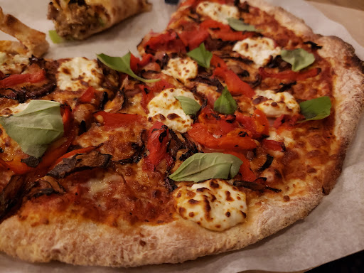 You like pizza? I think you'll like this new and innovative way of putting together a pizza. In this shop, one size fits all. Depending on the number of toppings you pick, prices range from $10-$15. You select a sauce, a choice of a few cheeses and from quite an array of toppings. They put it together in front of you; then put it in an oven designed for this size of pizza. You purchase a drink if you wish - go to a table and someone will drop down your hot fresh tasty pizza....
