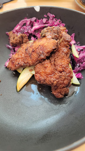 The food was very overpriced forchicken that was very chewy over a bed of red cabbage un cooked. They call it a coleslaw but I beg to differ.