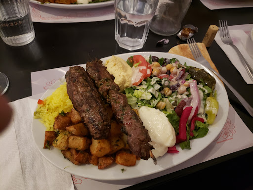 J’y suis allée un dimanche en début d’après-midi. Le restaurant était vide et on a été servie rapidement.Nous avons pris une assiette shawarma au poulet et un pita shish taouk poulet.