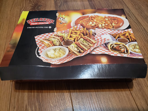 Rating : 1 star (2022) C'était ma premiÚre fois à Stratos Pizzeria de la 12 Ú Avenue Nord. On dirait que ce serait également ma derniÚre visite à un Stratos Pizzeria. J'ai pris des frites et de la poitrine de poulet. Les frites étaient bonnes mais la sauce qui les accompagnait était totalement farde et ne donnait aucun goût aux frites une fois dans la bouche. Rien à voir avec ce à quoi je suis normalement habituée dans mon resto préféré. Qu'est qui m'a pris d'opter pour de la poitrine de poulet ? Le poulet était totalement sans goût dans la bouche. Un peu comme s'il n'y avait eu aucune marinade avant de le faire frire. J'ai beaucoup regretté d'avoir gaspillé prÚs de 20$ sur une nourriture aussi farde.