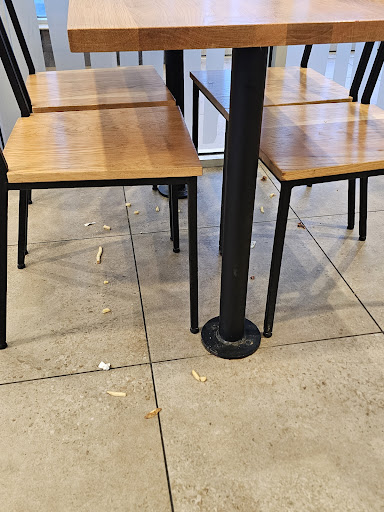 Cleanliness is also a major issue — the floor is often dirty, and it doesn’t seem like it's cleaned regularly. On multiple visits, I’ve seen employees eating or lounging in the only restaurant booth seating area.