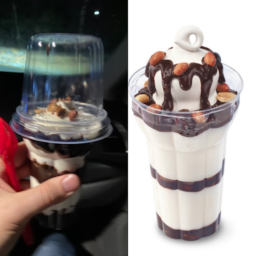 After three scoops, all the ingredients were gone and no cookie dough to be had. All that was left was a pale ice cream in cup. I proceeded to bring it back to get another properly built Blizzard and waited patiently at the Pick Up window for some assistance. They were busy. Mike saw me and came by to ask if I needed help and I stated the blizzard was devoid of ingredients and all that was left was ice cream. He then challenged me to say that it was not just ice cream but contained Chocolate syrup that made the ice milk a brown color, an ingredient in the Extreme Blizzard therefore, not just “Ice Cream” as I had stated. I noted his tone and look as dismissing in nature and asked him if he was about to debate and argue with the customer.