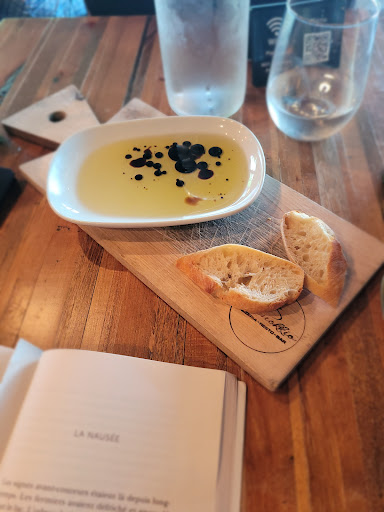 Par la suite, nous avons attendu 30 minutes pour recevoir nos consommations. Ă ce moment-lĂ , nous nâavions toujours pas commandĂ© nos plats. Une fois les commandes prises, on nous a servi un petit amuse-bouche : du pain accompagnĂ© dâhuile dâolive et de vinaigre balsamique. Un geste apprĂ©ciĂ©, mais assez banal. Avec un peu dâherbes ou de parmesan, ça aurait pu mieux mettre en appĂ©tit et donner un avant-goĂ»t plus raffinĂ© du repas Ă venir.