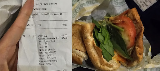 Read moreWent to this store on Feb 11/22 Got two veggie subs one cold cut and 4 drinks. Thought cost to be around 40.00. I am a senior on very limited budget. I feel bad that I don't have extra for tips but try to spend money at local businesses. At 72 I am definitely not tech savvy. Could not get "tap" to work asked for help. Was told to press 1 or 0 to get tap to work. Did as told it worked went home. At home realized tip of 7.00 went through. Tried to fix next day but again at 72 didn't think to keep receipt. We ate the subs and drinks. But felt overwhelmed trying to get tip money back. I try to do the best I can for our Sidney businesses but will definitely steer clear of Subway from now on.